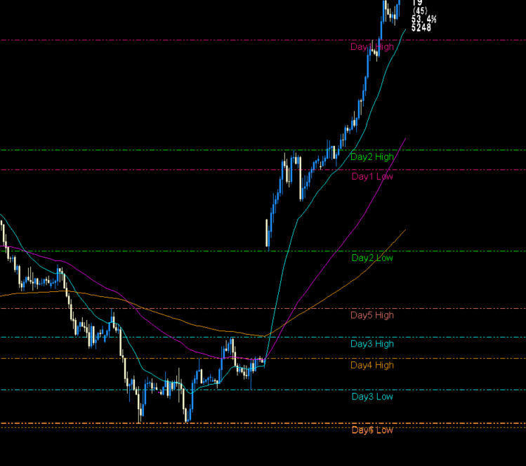 自作で過去7日~10日前の高値安値を描画すると、エントリーゾーンを論理的に絞り込める。